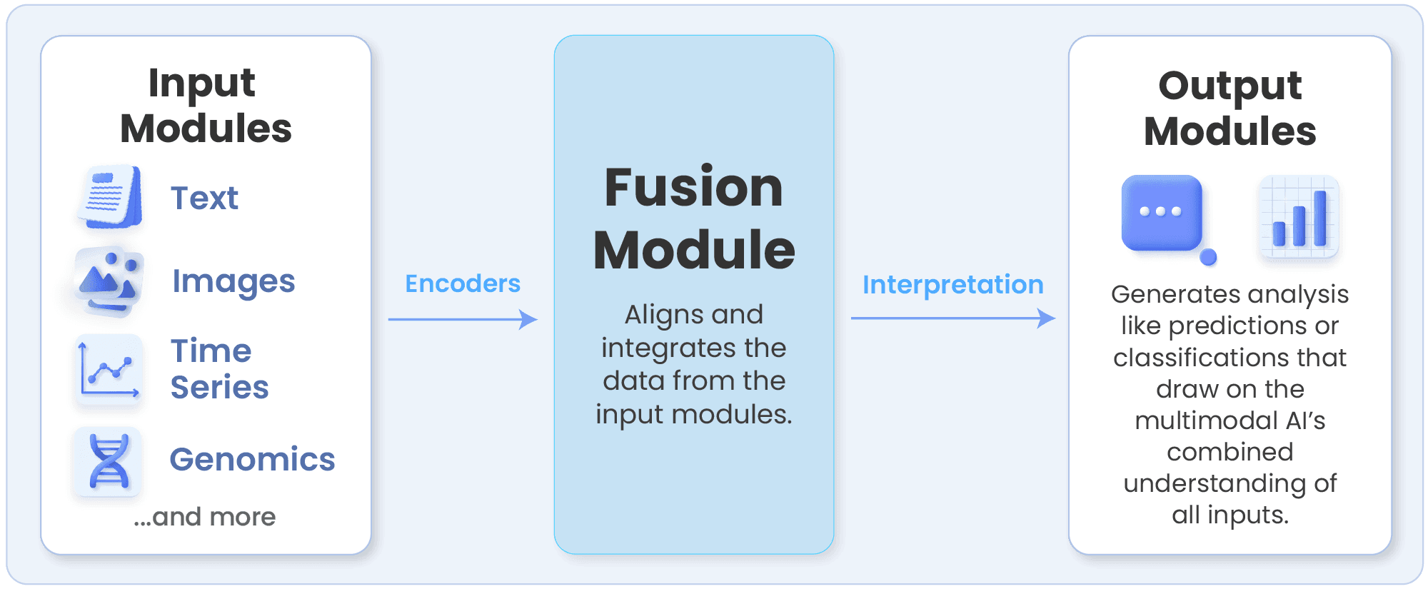 Together, these components allow multimodal AI to connect patterns across a massive range of different data types, producing a more holistic understanding of complex relationships and operational systems.