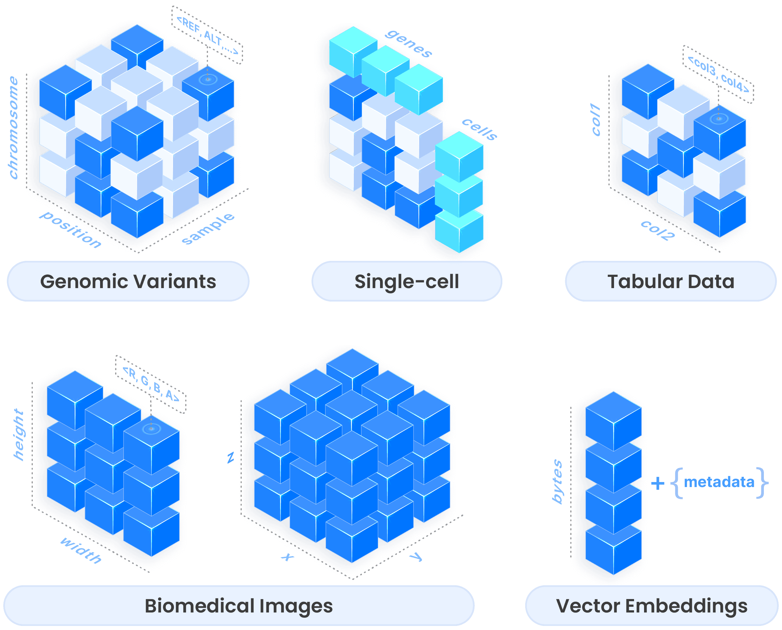 Most importantly, by structuring all data, regardless of modality, using the same fundamental array model, TileDB enables seamless integration across previously siloed data types. A researcher can query genomic variants alongside transcriptomic data and imaging in a unified computational framework, opening new possibilities for integrative analysis.