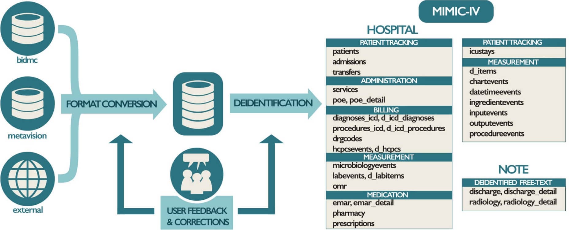 Figure 8: An overview of the development process for MIMIC-IV. (https://www.nature.com/articles/s41597-022-01899-x.pdf)