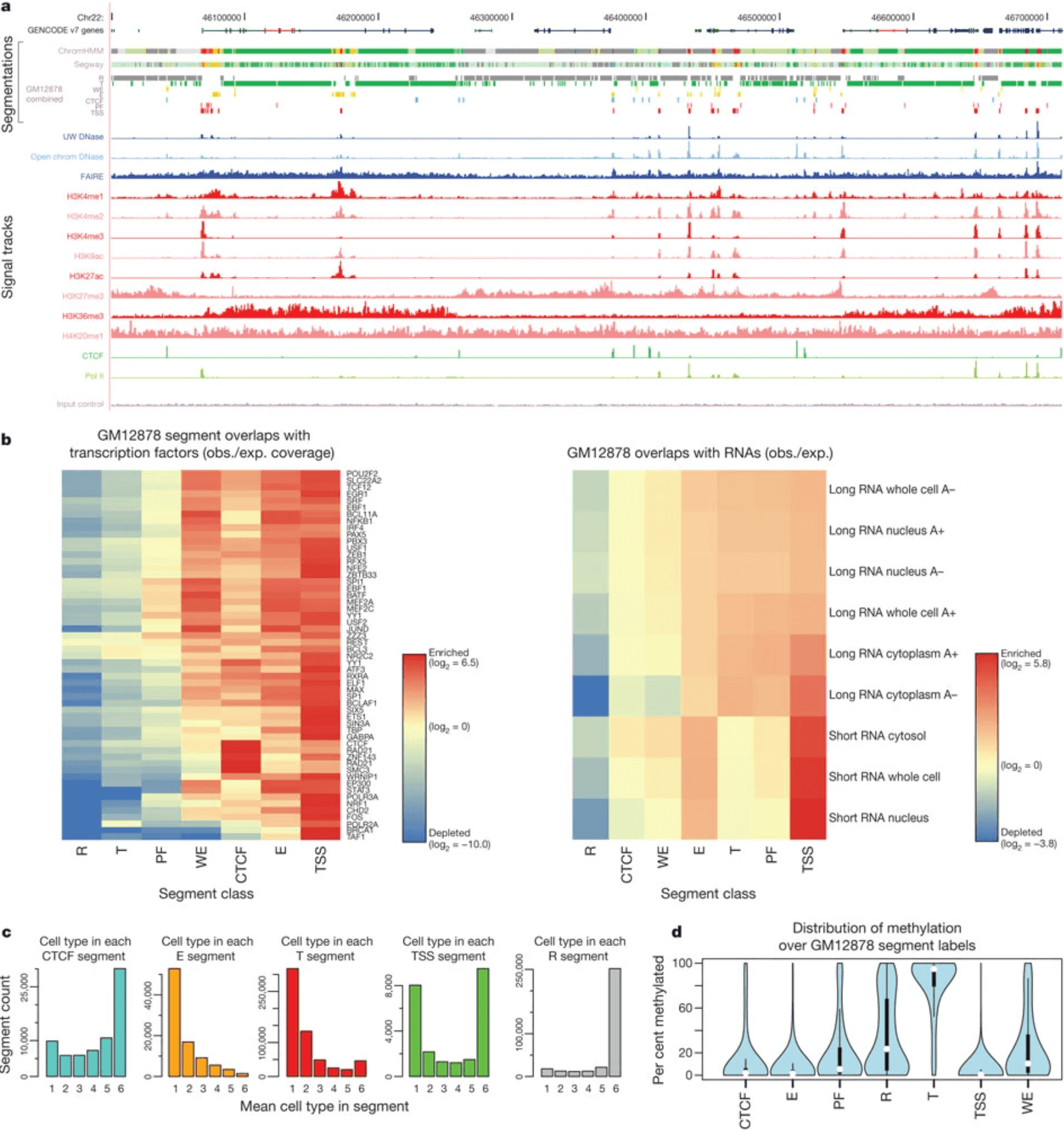 Figure 15: Integration of ENCODE data by genome-wide segmentation. (https://www.nature.com/articles/nature11247)