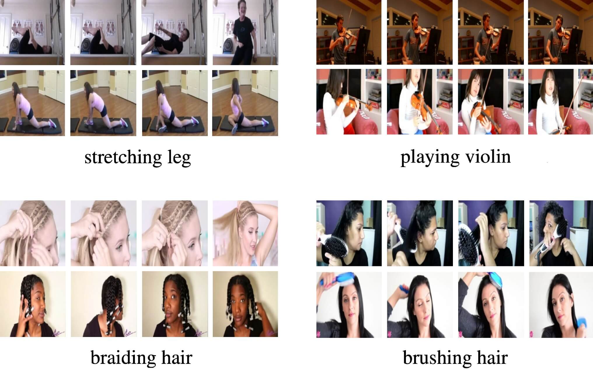 Figure 13: Example classes from the Kinetics dataset. Note that in some cases a single image is not enough for recognizing the action or distinguishing classes. (https://arxiv.org/pdf/1705.06950)